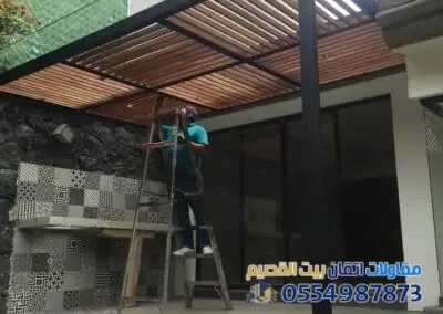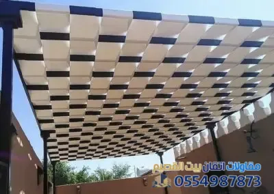 - تركيب الهيكل والتغطية: تركيب الإطارات العلوية ثم إضافة مادة التغطية (خشب، قماش، أو لكسان).