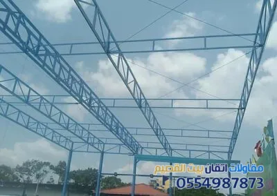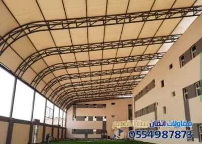 - تغطية ساحات الانتظار والملاعب (مظلات إكس أو مخروطية).