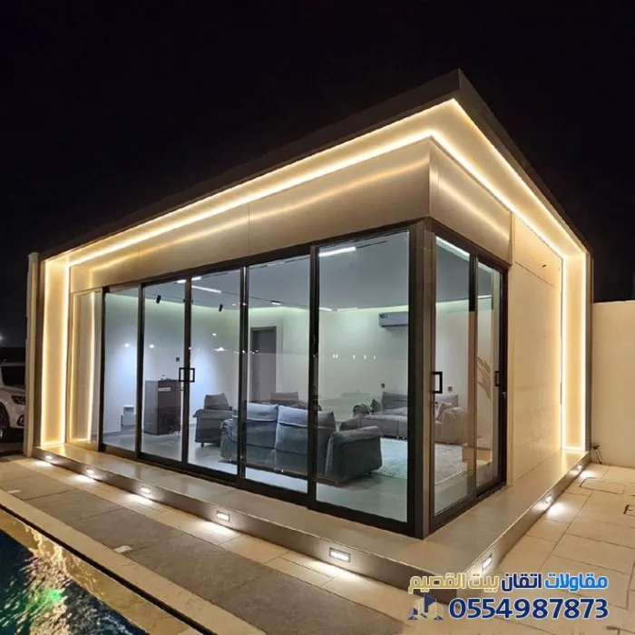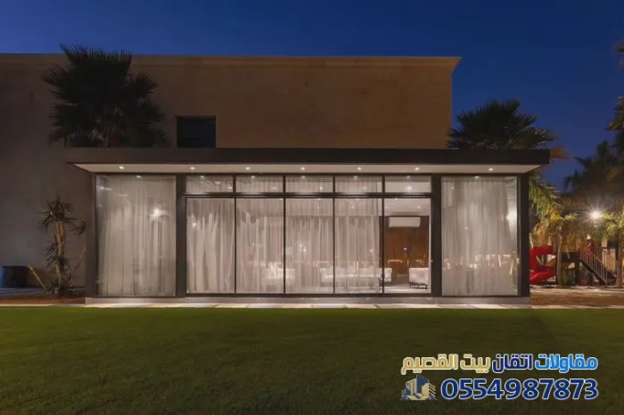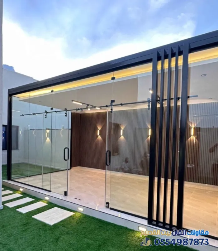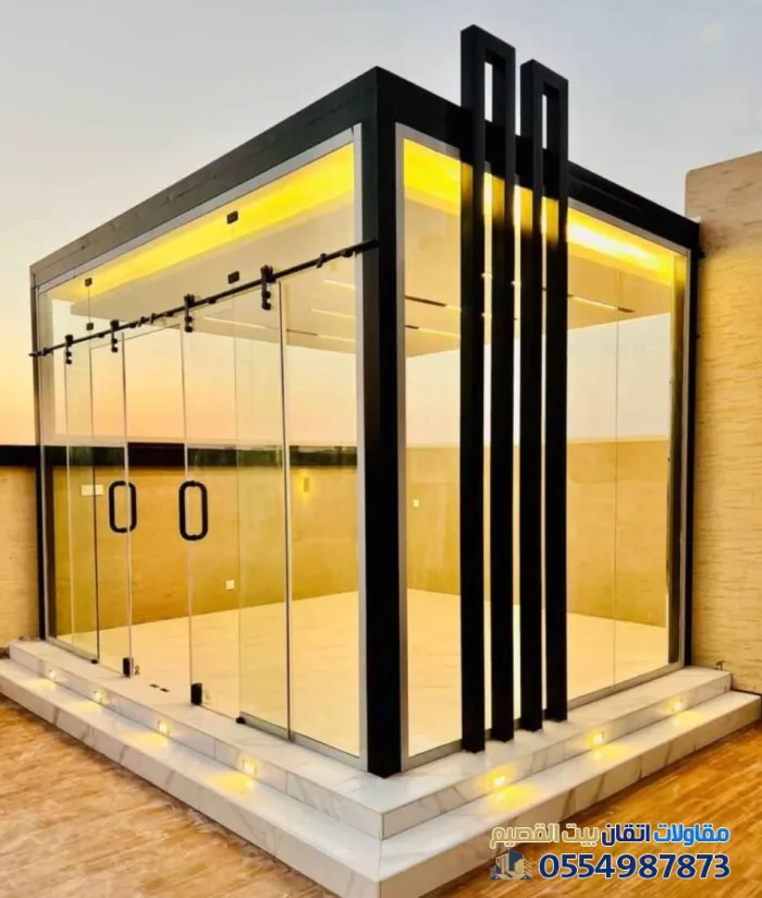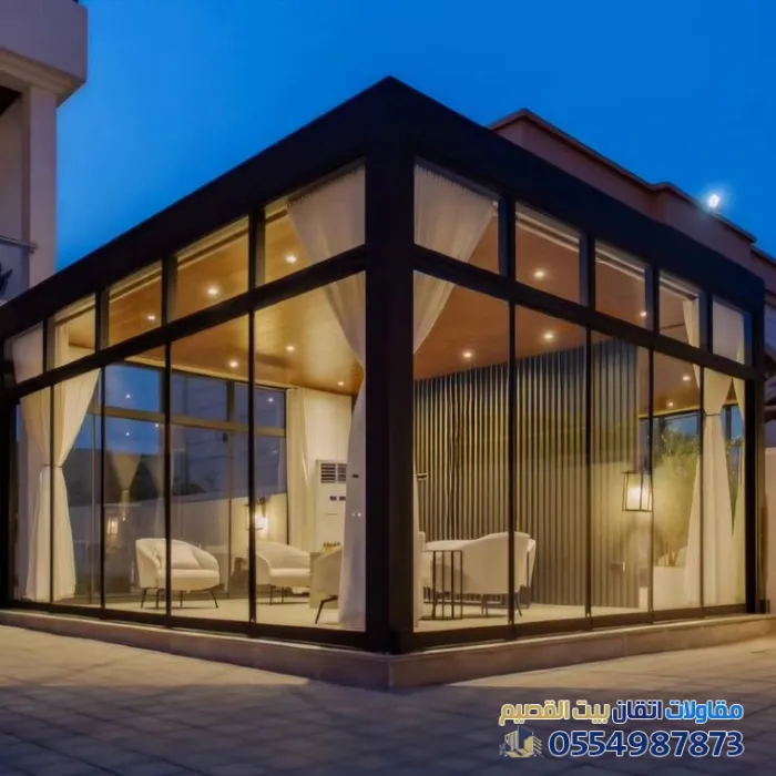 تُعد المجالس الخارجية الزجاجية اليوم من أرقى الإضافات المعمارية التي تضفي لمسة جمالية وعملية على فلل شمال القصيم. ففي أحياء مثل "بريدة"، "وعنيزة"، أصبح التصميم العصري الذي يدمج بين الداخل والخارج مطلباً أساسياً للباحثين عن الفخامة والراحة.