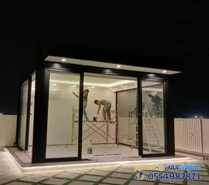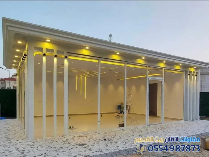 - سرعة التنفيذ (الجاهزية): المجالس الجاهزة توفر عناء البناء التقليدي والترميم الطويل؛ حيث يتم تركيب الهياكل المعدنية والزجاج في وقت قياسي.