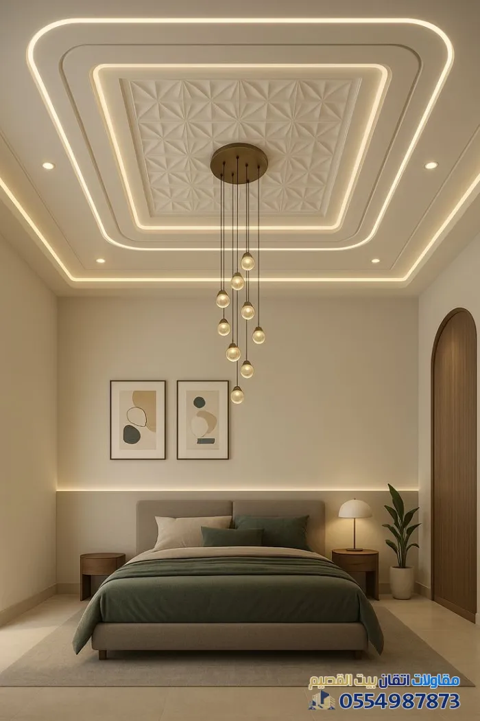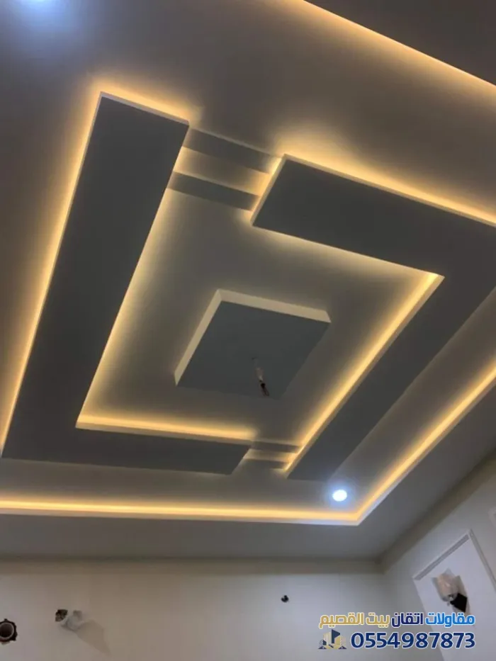 ننفذ أرقى تصاميم الجبس بورد الكلاسيكية والمودرن،ومع توزيع احترافي للإضاءة المخفية وفتحات التكييف، مما يعطي السقف لمسة هندسية رائعة.